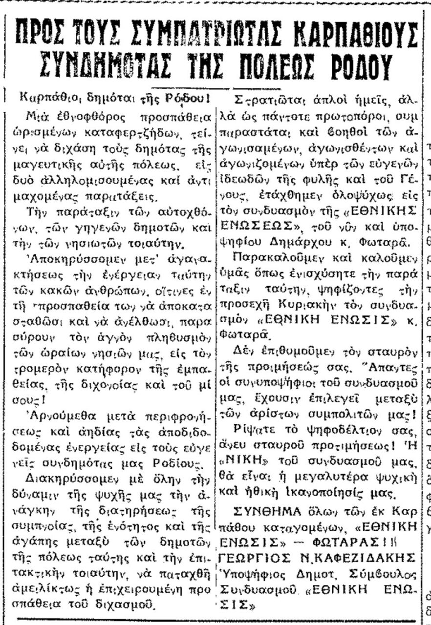 Σαν σήμερα ...Ο εκτιμώμενος χρόνος ανάγνωσης είναι λιγότερο από ένα λεπτό Σαν σήμερα, 18.11.54, εφ. Ροδιακή: "Προς τους συμπατριώτες Καρπάθιους συνδημότες πόλεως Ρόδου" 350 Views