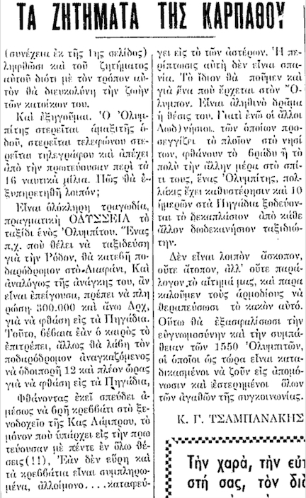 Σαν σήμερα ...Ο εκτιμώμενος χρόνος ανάγνωσης είναι λιγότερο από ένα λεπτό Σαν σήμερα, 22.1.1951, εφ. Ροδιακή: "Τα ζητήματα της Καρπάθου - 1.550 Ολυμπίτες καταδικασμένοι στην απομόνωση" του Κ. Γ. Τσαμπανάκη 1020 Views
