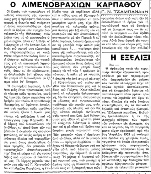 Σαν σήμερα ...Ο εκτιμώμενος χρόνος ανάγνωσης είναι λιγότερο από ένα λεπτό Σαν σήμερα, 24.12.1953, εφ. Ροδιακή: "Ο Λιμενoβραχίων Καρπάθου" του Γ. Ν. Τσαμπανάκη 784 Views