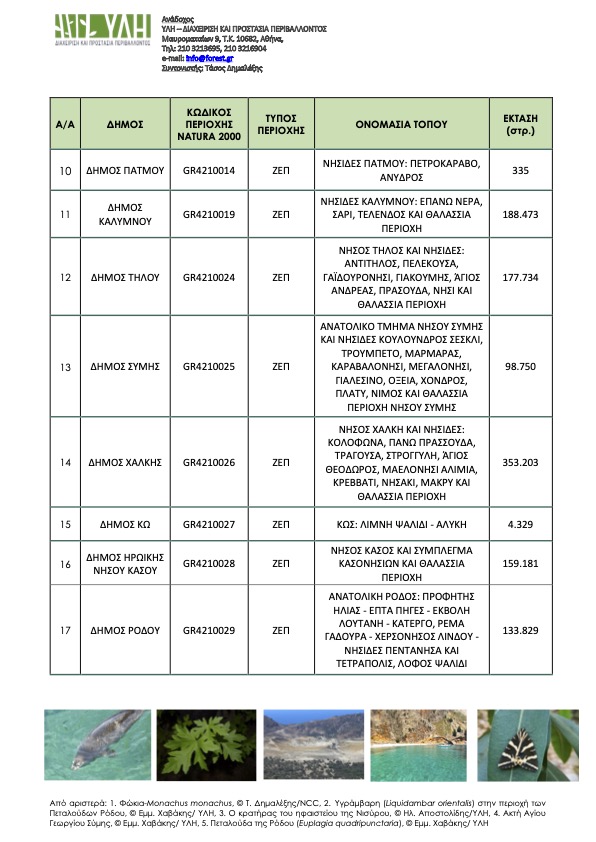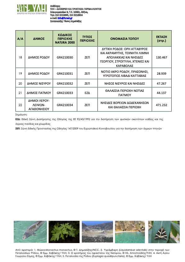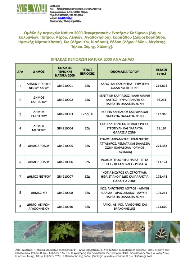Δημόσια Διαβούλευση Ειδικής Περιβαλλοντικής Μελέτης Ομάδα 8γ περιοχών Natura 2000 Περιφερειακών Ενοτήτων Καλύμνου (Δήμοι Καλυμνίων,Πάτμου, Λέρου, Λειψών, Αγαθονησίου), Καρπάθου (Δήμοι Καρπάθου, Ηρωικής ΝήσουΚάσου), Κω (Δήμοι Κω, Νισύρου), Ρόδου (Δήμοι Ρόδου, Μεγίστης, Τήλου, Σύμης, Χάλκης).