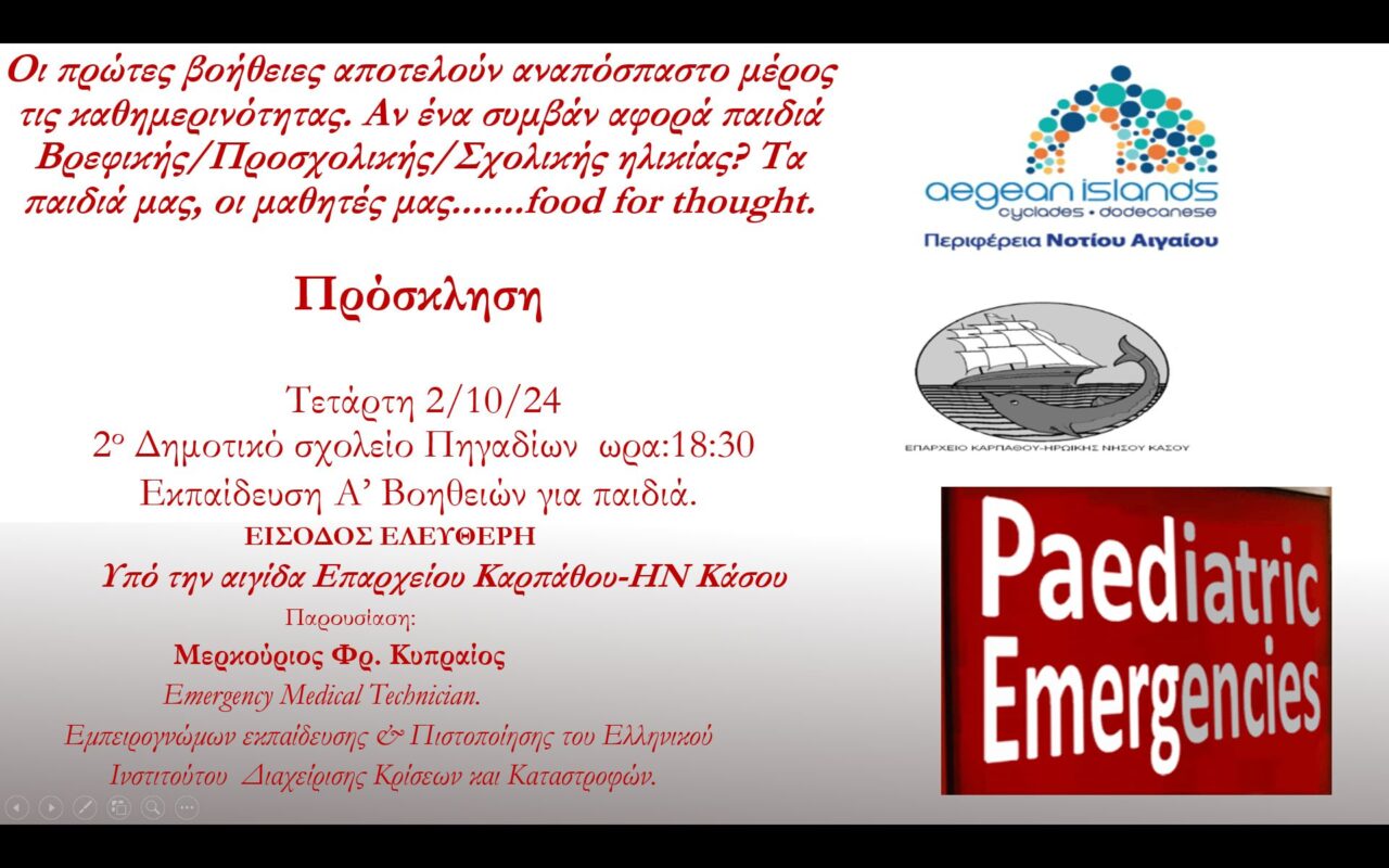Κοντά μας, όπως πάντα, θα είναι ο κος Μερκούριος Φρ. Κυπραίος, Emergency Medical Technician, Εμπειρογνώμων εκπαίδευσης & Πιστοποίησης του Ελληνικού Ινστιτούτου Διαχείρισης Κρίσεων και Καταστροφών.
