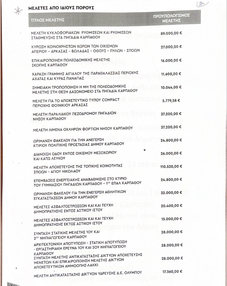 Ζητώ από τον κύριο Δήμαρχο να ενημερώσει επίσημα τον Καρπαθιακό λαό για τα εξής: