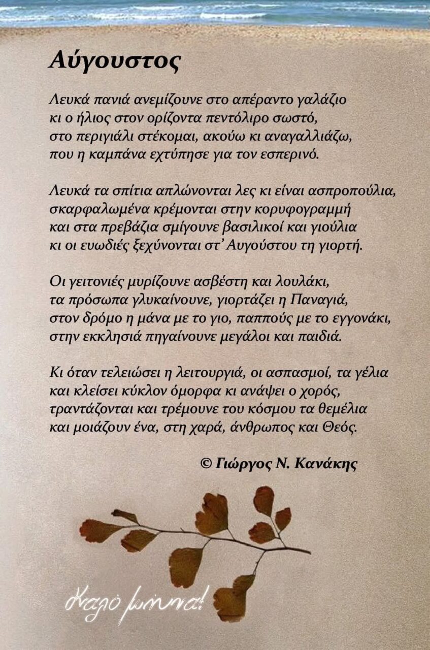 κι οι ευωδιές ξεχύνονται στ’ Αυγούστου τη γιορτή.