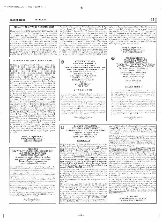• Δημοσιοποίηση του σχετικού εγγράφου