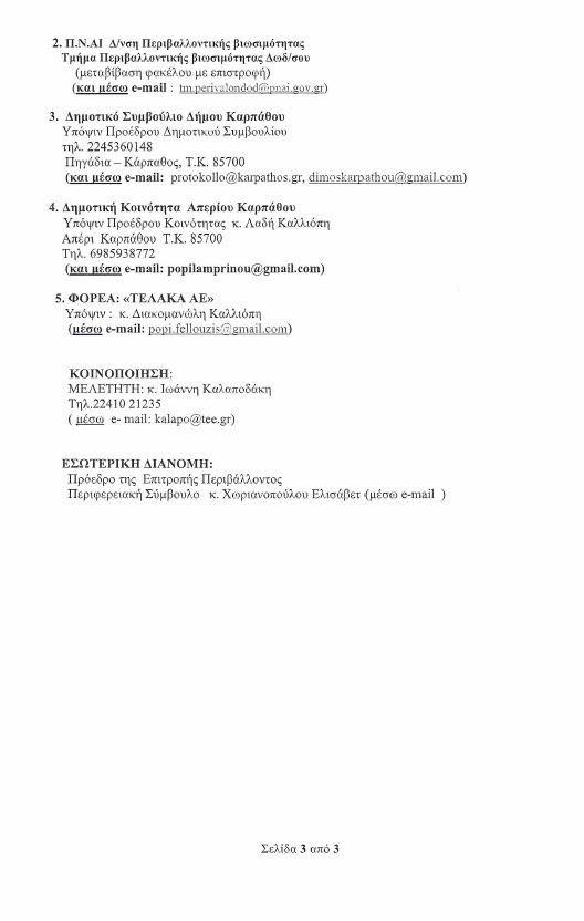 Προς Πρόεδρο του Δημοτικού Συμβουλίου Καρπάθου