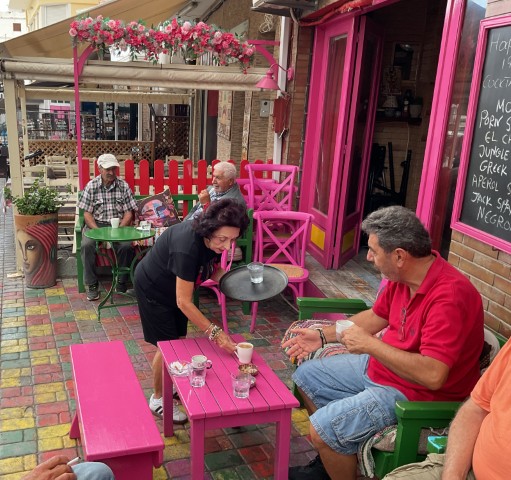 Going down towards the port, quite low, on the right side of the road and opposite Lazarus (for those who remember him) is a café, which the morning sun does not reach, and the sea breeze keeps its courtyard cool. We used to gather there every morning this summer. A motley group but also somewhat similar: people of a certain age, euphemistically called “old people” who would mock today’s merciless youth, with their overt ageism.