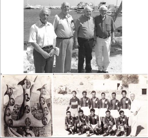Μετά από μισό αιώνα τέσσερις από τους ποδοσφαιριστές της «Τρίαινας» του Ποσειδώνα. Από αριστερά: Γιώργος Μανωλάκης, Μανώλης Κασσώτης, Θεοδόσης Μανωλάκης, Ντίνος Χιωτάκης. After half a century, four of Poseidon’s “Triena” soccer players. From left: George Manolakis, Manolis Cassotis, Theodosis Manolakis, Dinos Chiotakis.