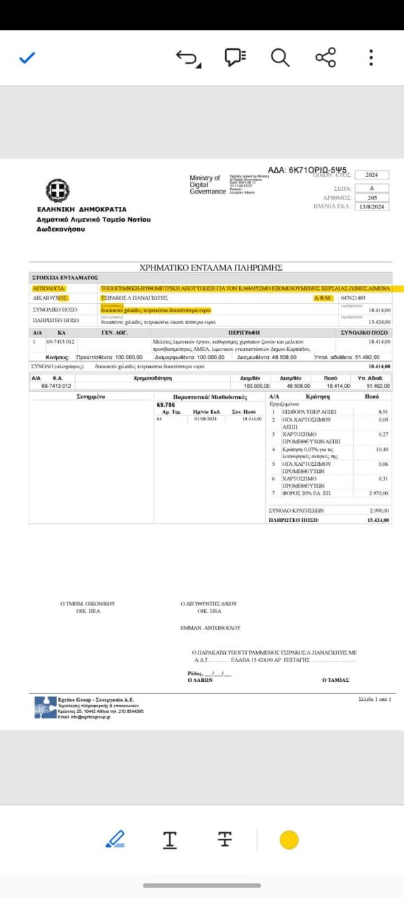 ✅ Για την ράμπα καθέλκυσης σκαφών του Φοινικιού είχε εκπονηθεί μελέτη το 2018. Οφείλω να επισημάνω όμως πως για την υλοποίηση του συγκεκριμένου έργου κανένας ανάδοχος δεν ήταν διατεθειμένος να συνάψει σύμβαση διότι το ποσό το οποίο προϋπολογιζόταν ήταν μικρό .