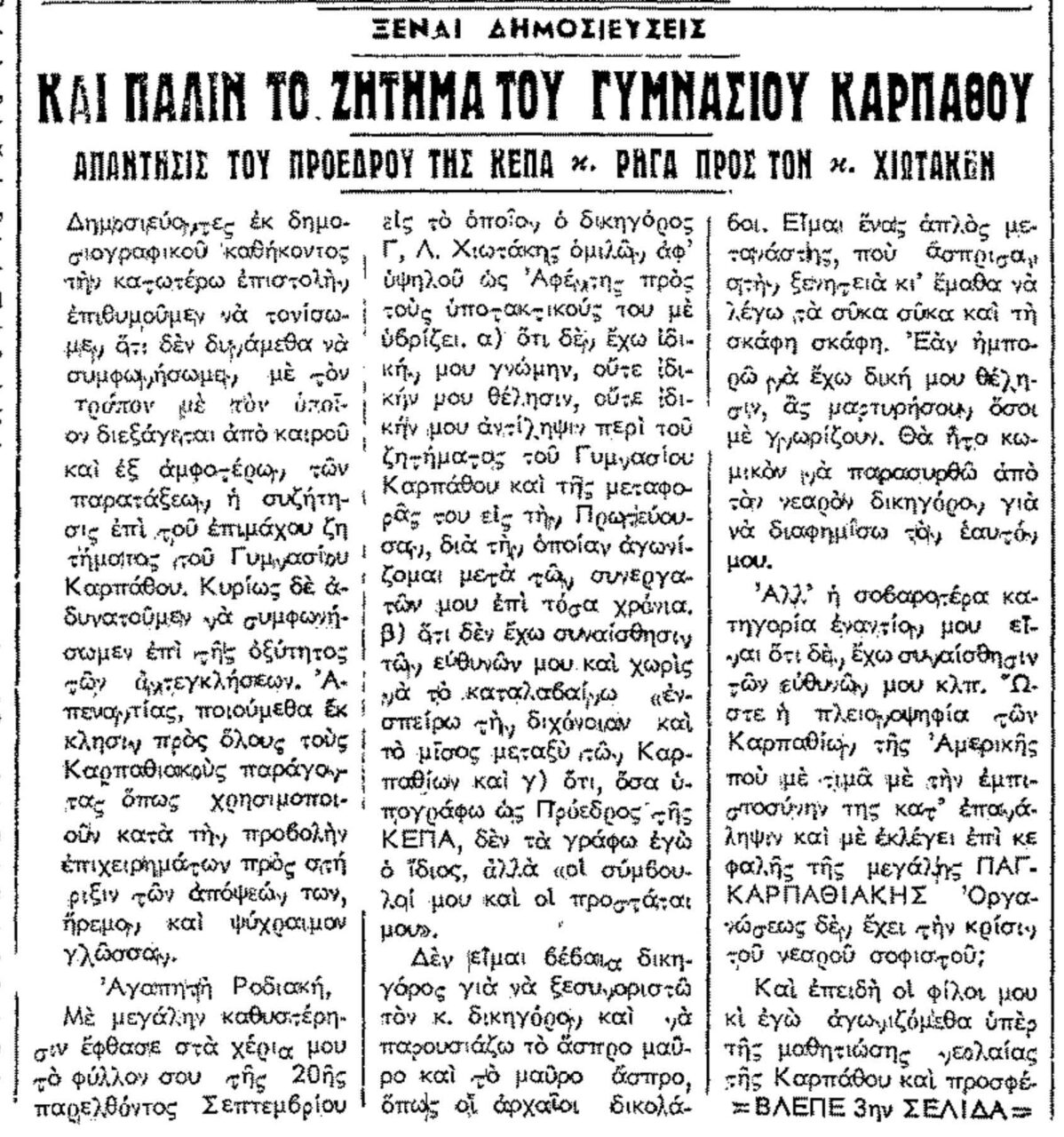 Σαν σήμερα ...Ο εκτιμώμενος χρόνος ανάγνωσης είναι λιγότερο από ένα λεπτό Σαν σήμερα, 26.10.56, εφ. Ροδιακή: "Απάντηση του Προέδρου ΚΕΠΑ κ. Ρήγα στον κ. Χιωτάκη για το Γυμνάσιο Καρπάθου" 787 Views