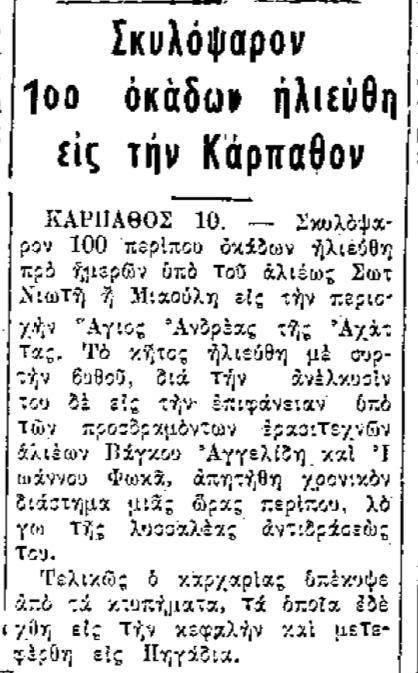Σαν σήμερα ...Ο εκτιμώμενος χρόνος ανάγνωσης είναι λιγότερο από ένα λεπτό Σαν σήμερα, 11.7.62, εφ. Πρόοδος: "Σκυλόψαρο 100 οκάδων ψάρεψε ο Μιαούλης στην Κάρπαθο" 1190 Views