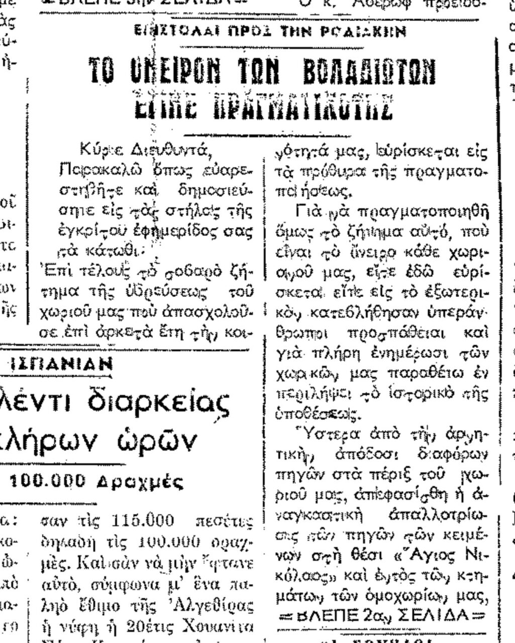 Σαν σήμερα ...Ο εκτιμώμενος χρόνος ανάγνωσης είναι λιγότερο από ένα λεπτό Σαν σήμερα, 13.10.56, εφ. Ροδιακή: "Το όνειρο των Βωλαδιωτών έγινε πραγματικότης" 1209 Views