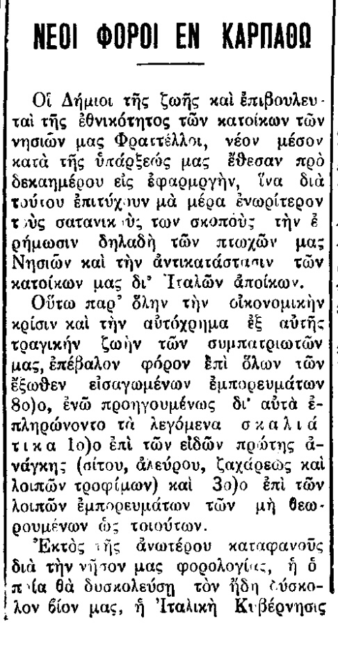 Σαν σήμερα ...Ο εκτιμώμενος χρόνος ανάγνωσης είναι λιγότερο από ένα λεπτό Σαν σήμερα, 13.8.1932, εφ. Δωδεκάνησος: Νέοι Φόροι εν ΚΑΡΠΑΘΩ 472 Views