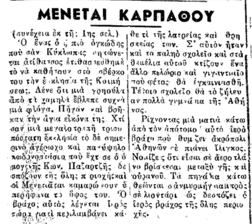 Ο Ι. Καραμπάτης γράφει στην εφ. ΠΡΟΟΔΟ για τις Μενετές! Πως πρωτοκατοικήθηκε και από που πήρε το όνομα το χωριό. Μας λέει λοιπόν ότι από την επανάληψη του ρήματος μένετε, μένετε… δόθηκε το όνομα στο χωριό Μενετές!