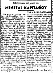 Σαν σήμερα ...Ο εκτιμώμενος χρόνος ανάγνωσης είναι λιγότερο από ένα λεπτό Σαν σήμερα 18.9.53 εφ. Πρόοδος "Μενεταί Καρπάθου" 304 Views