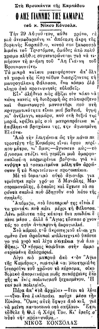 Σαν σήμερα ...Ο εκτιμώμενος χρόνος ανάγνωσης είναι λιγότερο από ένα λεπτό Σαν σήμερα 17.10.53 εφ. Πρόοδος "Ο Αης Γιάννης της Καμάρας" του Νίκου Κόνσολα 614 Views
