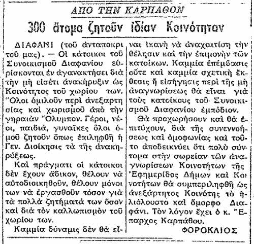 Σαν σήμερα ...Ο εκτιμώμενος χρόνος ανάγνωσης είναι λιγότερο από ένα λεπτό Σαν σήμερα 3.11.52, εφ. Ροδιακή: Ανεξαρτητοποίηση και νέα κοινότητα ζητούν οι Διαφανιώτες 1768 Views