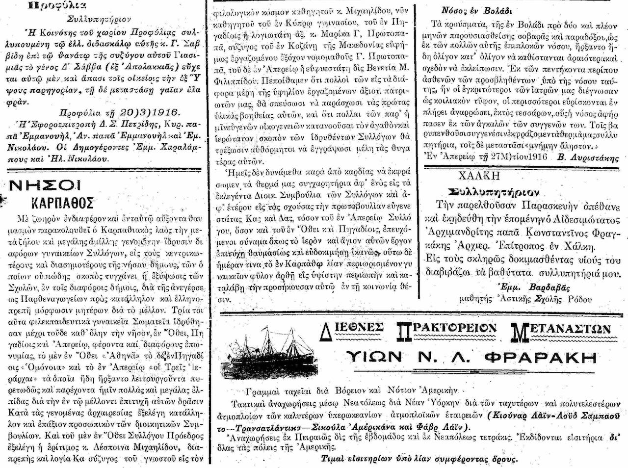 Σαν σήμερα ...Ο εκτιμώμενος χρόνος ανάγνωσης είναι λιγότερο από ένα λεπτό Σαν σήμερα, 31.3.1916, εφ. Ροδιακή: "Νήσος Κάρπαθος: Επιδημία κοιλιακού τύφου, ίδρυση γυναικείων συλλόγων" 2161 Views φωτογραφία facebook Μίμης Πανάρετος