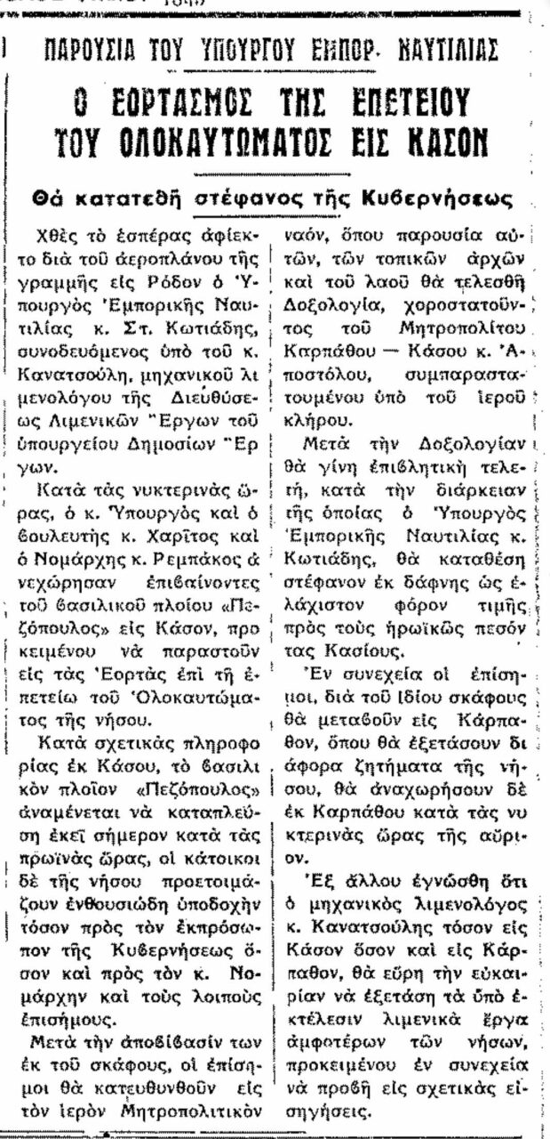 Σαν σήμερα ...Ο εκτιμώμενος χρόνος ανάγνωσης είναι λιγότερο από ένα λεπτό Σαν σήμερα, 7.6.1957, εφ. Ροδιακή: "Ο εορτασμός της Επετείου του Ολοκαυτώματος εις Κάσον" 1367 Views