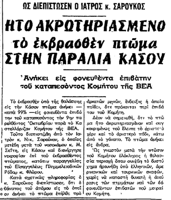 Σαν σήμερα ...Ο εκτιμώμενος χρόνος ανάγνωσης είναι λιγότερο από ένα λεπτό Σαν σήμερα, 8.3.1968, εφ. Πρόοδος: "Ήτο ακρωτηριασμένο το εκβρασθέν πτώμα στην παραλία Κάσου" 957 Views