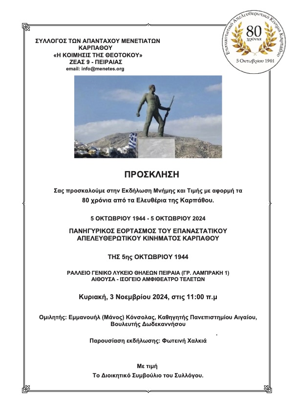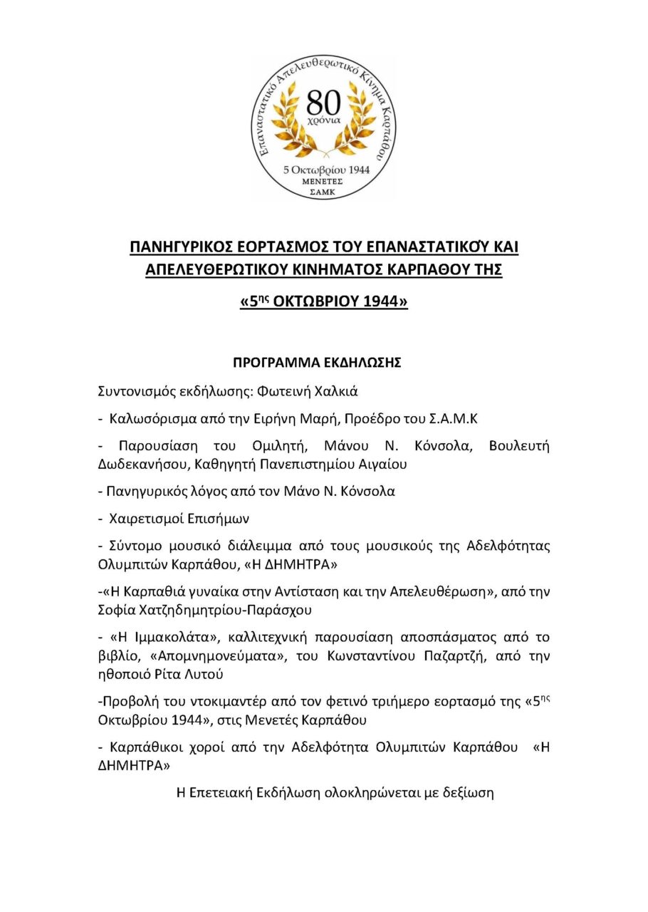 HotΟ εκτιμώμενος χρόνος ανάγνωσης είναι λιγότερο από ένα λεπτό Ο Μάνος Κόνσολας, η Σοφία Παράσχου Χατζηδημητρίου, η Ρίτα Λυτού αλλά και το χορευτικό της ΔΗΜΗΤΡΑΣ στον Πανηγυρικό Εορτασμό της 5ης Οκτωβρίου 805 Views 1.10.2024 Καρπαθιακά Νέα