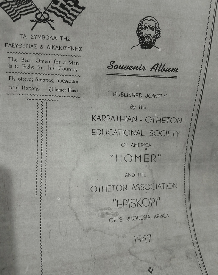 Κρητσιώτη Σοφία Εμμ. Souvenir Album. Karpathian -Otheiton Edoucational Society of America “Homer” and thw Otheton Association “Episkopi” of S. Rhodesia, Africa, 1947