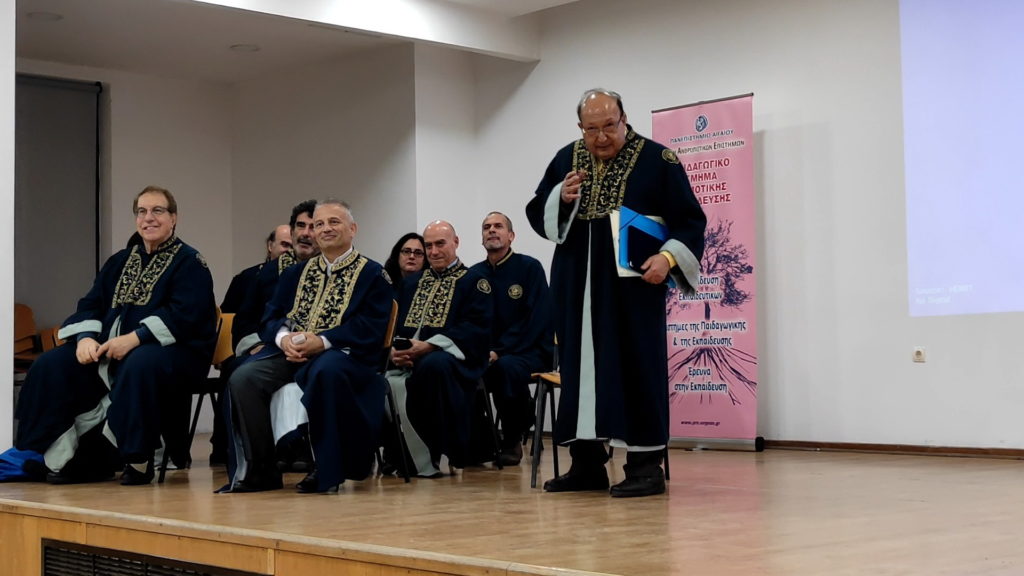 Σύμφωνα με σχετικό ρεπορτάζ που πραγματοποίησε ο Αριστείδης Μιαούλης για την ertnews.gr στην εκδήλωση χαιρέτισε ο πρόεδρος του Παιδαγωγικού Τμήματος Δημοτικής Εκπαίδευσης, καθηγητής κ. Πολύκαρπος Καραμούζης ενώ η παρουσίαση της προσωπικότητας και του έργου του τιμώμενου έγινε από τον αναπληρωτή καθηγητή του Παιδαγωγικού Τμήματος Δημοτικής Εκπαίδευσης κ.Γεώργιο Κατσαδώρο.