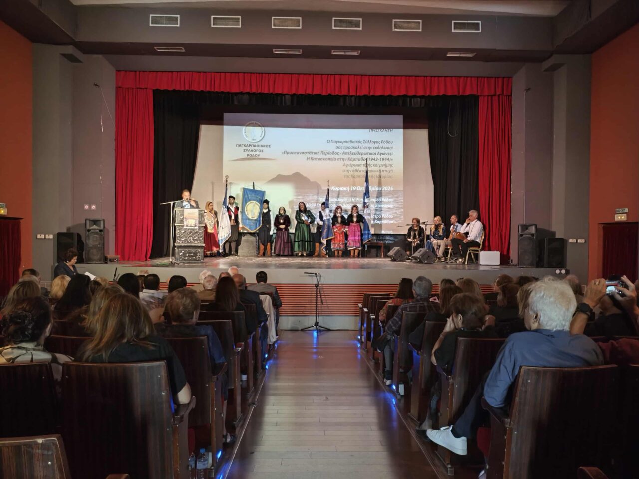 Η εκδήλωση του Παγκαρπαθιακού Συλλόγου Ρόδου για την «Κατασκοπεία και την Απελευθέρωση της Καρπάθου» πραγματοποιήθηκε την Κυριακή 19η Οκτωβρίου 2025, στο Δημοτικό Θέατρο Ρόδου.